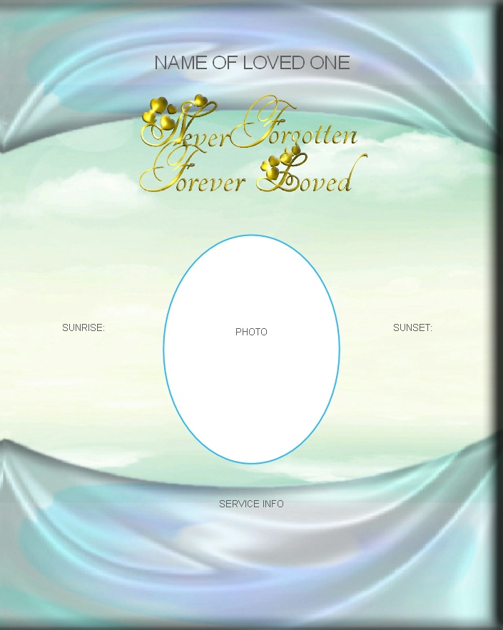 For Immediate Download:- Obituary Program Title 27 Gold “Never Forgotten Forever Loved”